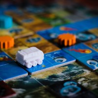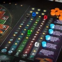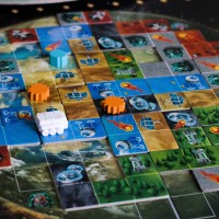 Przed sobą mamy planszę własnej planety, do której dokładamy różnokształtne kafelki dobierane z centralnego magazynu. To w sumie tyle jeżeli chodzi o mechanikę. Cała reszta rozgrywki to podnoszenie wskaźników na torach 5 zasobów, w zależności od typu terenu położonego na mapę. Każdy z torów umożliwia zdobywanie punktów, bonusów, ulepszeń, a nawet jeżdżenie po planecie własnymi łazikami – to sprawia największą frajdę 😃 Koniec końców chodzi o wypełnienie jak największej ilości rzędów i kolumn w naszej siatce na planszy i ukończenie celów określonych na starcie.