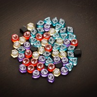 Komponenty w grze są ładne, od klimatycznych kart, przez dwuwarstwowe planszetki, po urocze znaczniki graczy. Do tych ostatnich jedna uwaga – “dropsy” co prawda różnią się kształtem i ikoną, ale dwa z kolorów są prawie identyczne.