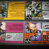 Ten, który mamy w rękach – Multiverse, jest samodzielną grą, czyli można od niej zacząć zabawę (chociaż przez mnogość zasad polecamy ją raczej dla ogranych graczy). Wpadamy w multiświat złożony z 6 superbohaterów – mniej znanych, jak Peggy Carter, Mighty Thor czy Ironheart (dziewczyny górą!), ale też wersje już istniejących jak Loki. Naprzeciwko mamy 3 łotrów oraz jednego niezdecydowanego (Cosmic Ghost Rider – wymiata!), który może stanąć po dowolnej ze stron.