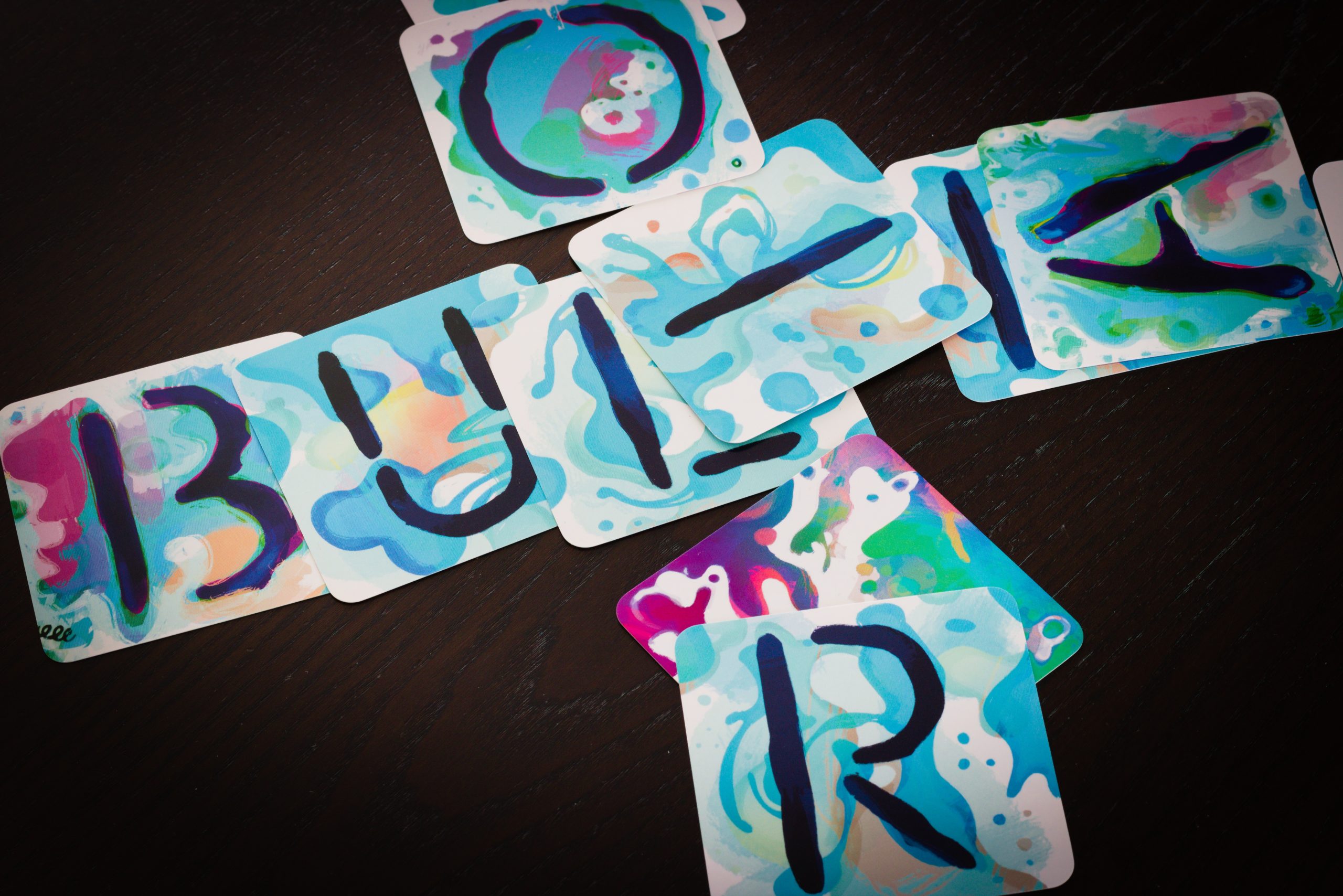 Gracze mają do przekazania hasła od 4 do 9-literowych, punktowanych zależnie od długości. Muszą to zrobić używając losowego zestawu liter-kleksów. Liter jest za mało i nie zawsze te pasujące, więc trzeba sobie jakoś poradzić. I wtedy do gry wkracza wyobraźnia i kreatywność! Odwrócone M to przecież W, to akurat proste. Ale może z U zrobić A? Albo troche zasłonić R przerabiając je na B? A niektóre litery po prostu pominąć, bo przecież słowo z przerwami też da się zgadnąć. Wszystkie chwyty dozwolone 😉