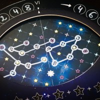 Nocne niebo, zakreślone białymi markerami daje efekt wow (chociaż są strasznie ciężkie do zmazania!), aż chciałoby się chwycić za teleskop 😉. Ani, która jest zapatrzona w gwiazdy od dziecka, bardzo podobało się, że układ konstelacji jest bardzo zbliżony do rzeczywistych.